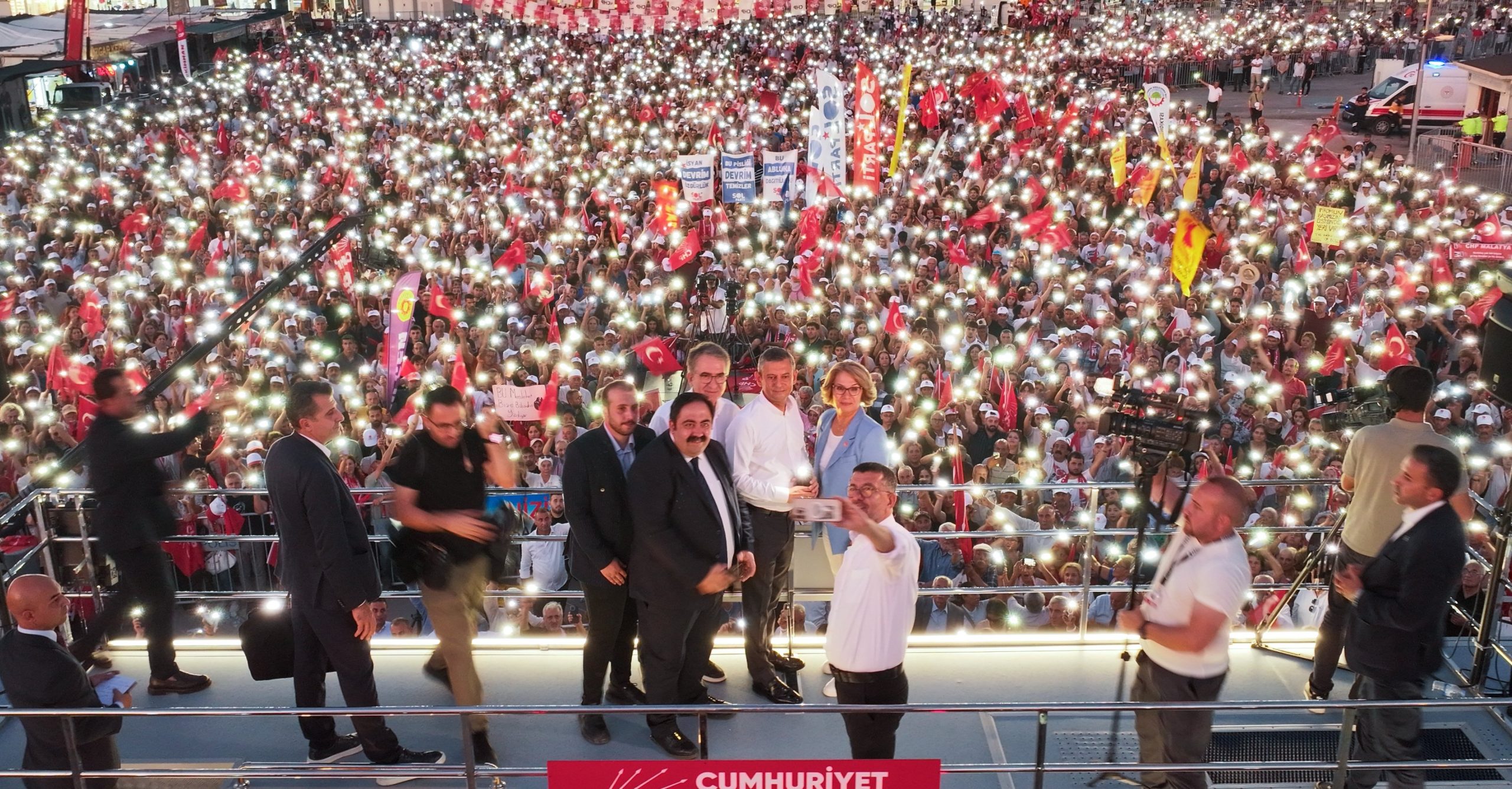 İlk tepkiyi DEM Partinin gösterdiği AK Parti, MHP, DEM üçlü işbirliği üzerine konuşan CHP lideri Özel: Erdoğan kendisini yalnız hissediyor. Yaşlandı yönetemiyor. Biraz daha iktidarını sürdürsün diye yeni ittifak görüntüsü vermek için tarihi bir fırsatı heba etmeye çalışıyor. Fotoğraf Malatya mitinginden. (Foto: CHP)