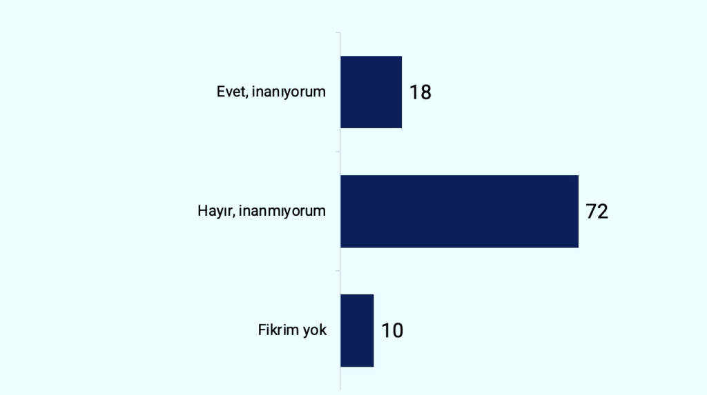 Aynı anket sonuçlarına göre toplumun yüzde 70’inden fazlası (yüzde 72) da Türkiye’ye bir saldırı olması halinde NATO’nun Türkiye’yi koruyacağına inanmıyor. Türkiye’nin yeterli hava savunma sistemine sahip olduğuna inananların oranı ise yüzde 50’nin altında kalıyor: yüzde 48.
