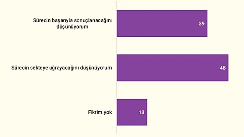 Dış gelişmelerin süreci olumsuz etkileyeceğini düşünenlerin oranı yüzde 13. Bu grup, bölgesel krizler, uluslararası baskılar veya jeopolitik gerilimlerin barış sürecini sekteye uğratabileceği endişesini taşıyor. Muhalefetin baskısını olası bir engel olarak görenlerin oranı ise yüzde 7’de kalmış, bu da sürecin başarısına yönelik temel tehdit algısının siyasi muhalefetten ziyade güvenlik ve istikrar sorunlarında yoğunlaştığını gösteriyor.