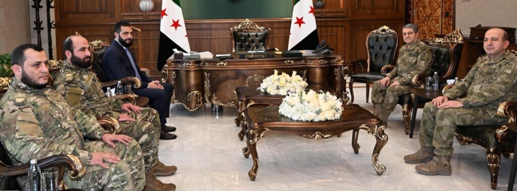 Türk askeri heyeti 5 Aralık’ta Şam’da Cumhurbaşkanı Şara ve komutanlarıyla görüşürken. (Foto: X/TSK)