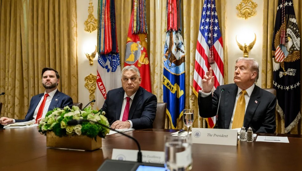 Avrupa’da yükselen sağın liderlerinden Macaristan Başbakanı Victor Orban, Beyaz Saray ziyaretinde ABD Başkanı Donald Trump ve Başkan Yardımcısı JD Vance’ın arasında görülüyor. (Foto: WhiteHouse)