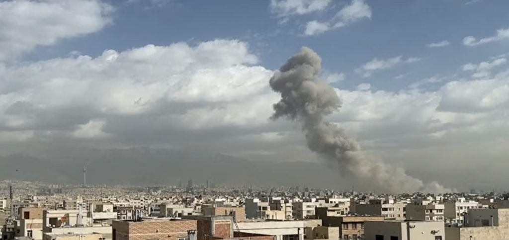 Sabah saatlerinde İsrail’in Tahran’a saldırmasının ardından, ABD Başkanı Trump, İran halkını operasyonu fırsat bilerek İslam Cumhuriyeti rejimini devirmeye çağırdı. Böylece çatışma iki ülke arasındaki bir kriz olmaktan çıkıp daha geniş çaplı bir bölgesel gerilime dönüştü. (Foto: Saldırı sırasında Tahran/ Ekran Görseli)