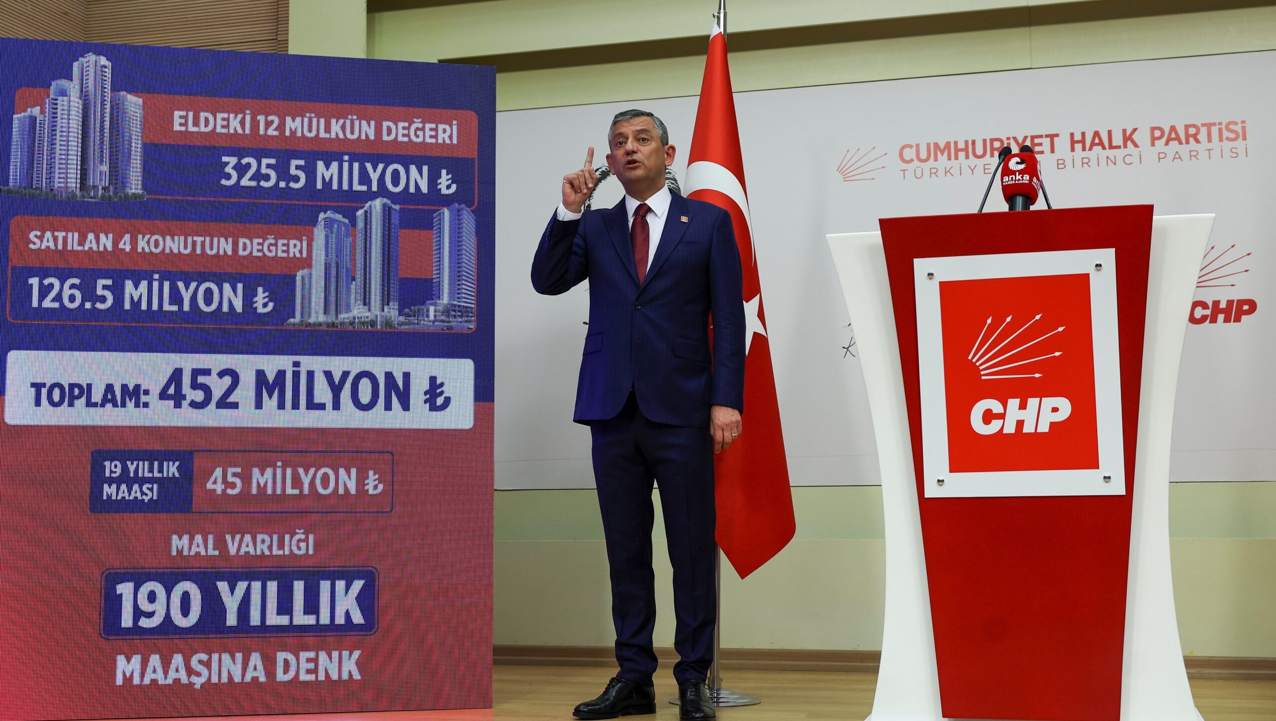 Gürlek için “19 yıllık maaşıyla bir ekmek bile almasa toplam 45 milyon TL kazanan bir bakanın 190 yılda alamayacağı servet” ifadesini kullanan Özel, “Normal bir demokraside böyle bir mal varlığının üzerine hükümet 15 dakika ayakta duramaz” diye konuştu.