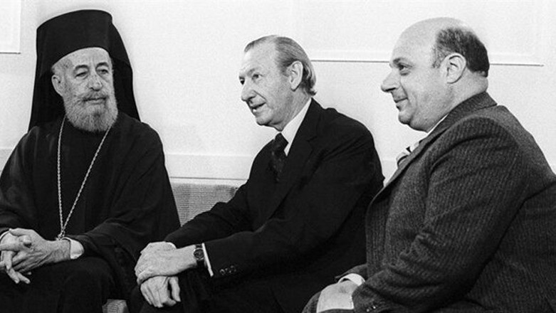 Kıbrıs Cumhuriyeti 1960’ta kurulurken Rumlardan seçilecek Cumhurbaşkanı bir din adamı, Ortodoks Kilisesi Başpiskoposu Makarios olmuştu. 1977-79 toplumlararası görüşmeleri sırasında Rum lider Makarios, dönemim BM Genel Sekreteri Kurt Waldheim ve Kıbrs Türk lideri Rauf Denktaş ile görülüyor.